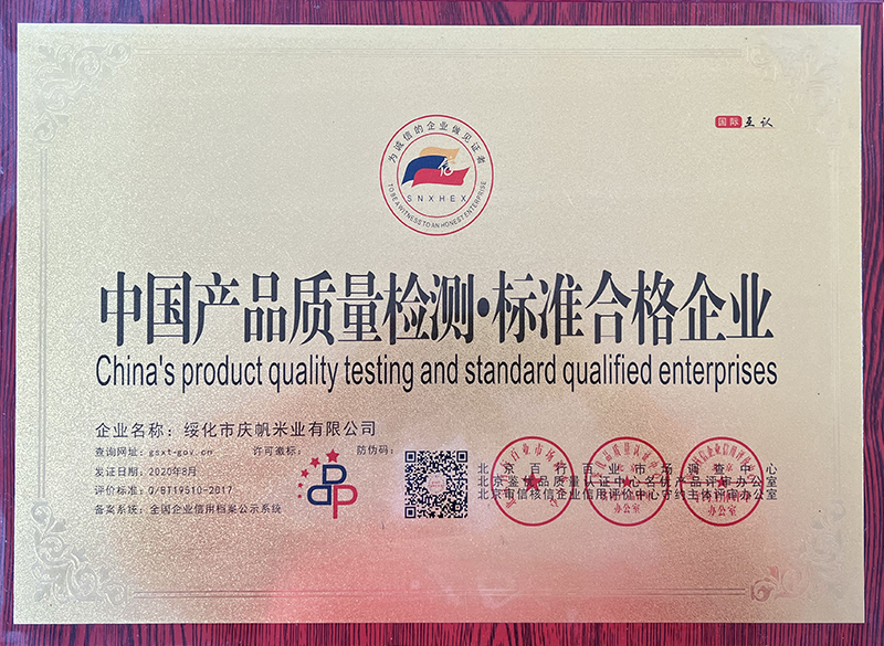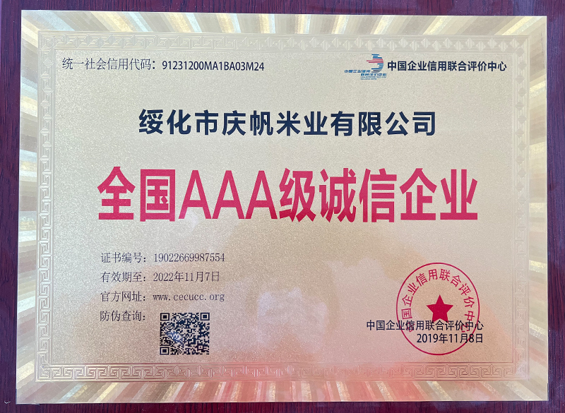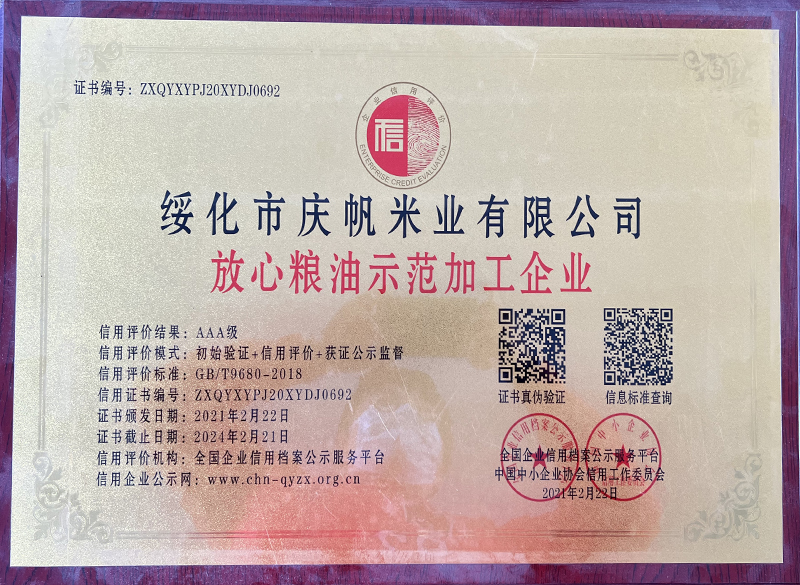 關(guān)于慶帆米業(yè) 客戶至上 品質(zhì)優(yōu)良 您現(xiàn)在的位置:網(wǎng)站首頁 > 關(guān)于我們 > 資質(zhì)榮譽(yù) 企業(yè)文化 CORPORATE CULTURE 資質(zhì)榮譽(yù) HONOR 領(lǐng)導(dǎo)致辭 LEADER’S SPEECH 公司簡(jiǎn)介 COMPANY PROFILE 黑龍江省質(zhì)量品牌雙保障信用認(rèn)證企業(yè) 放心糧油示范加工企業(yè) 綠色品牌 中國綠色“健康米” 全國AAA級(jí)誠信企業(yè) 中國產(chǎn)品質(zhì)量檢測(cè)標(biāo)準(zhǔn)合格企業(yè) 共15條記錄 當(dāng)前為第2頁/共3頁上一頁123下一頁